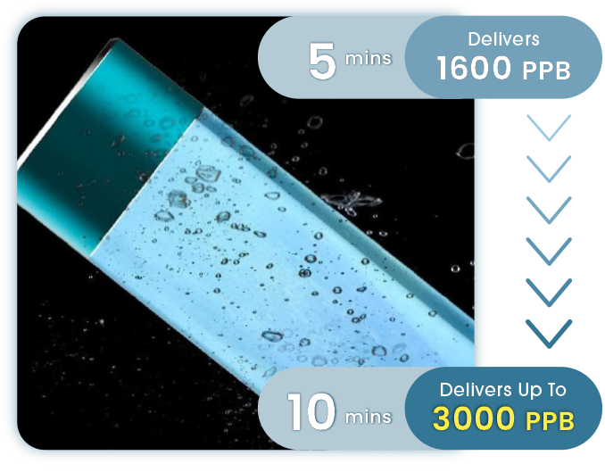 After 10 minutes, the concentration increases to 3000 PPB significantly higher than typical hydrogen water treatments on the market.