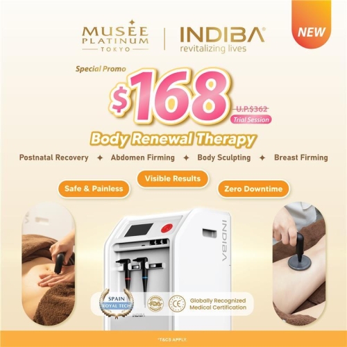 Experience the power of science-backed beauty with Body Rejuvenation Therapy, Musee Platinum Tokyo’s latest professional treatment using INDIBA®’s patented 448kHz + 20kHz radiofrequency technology.