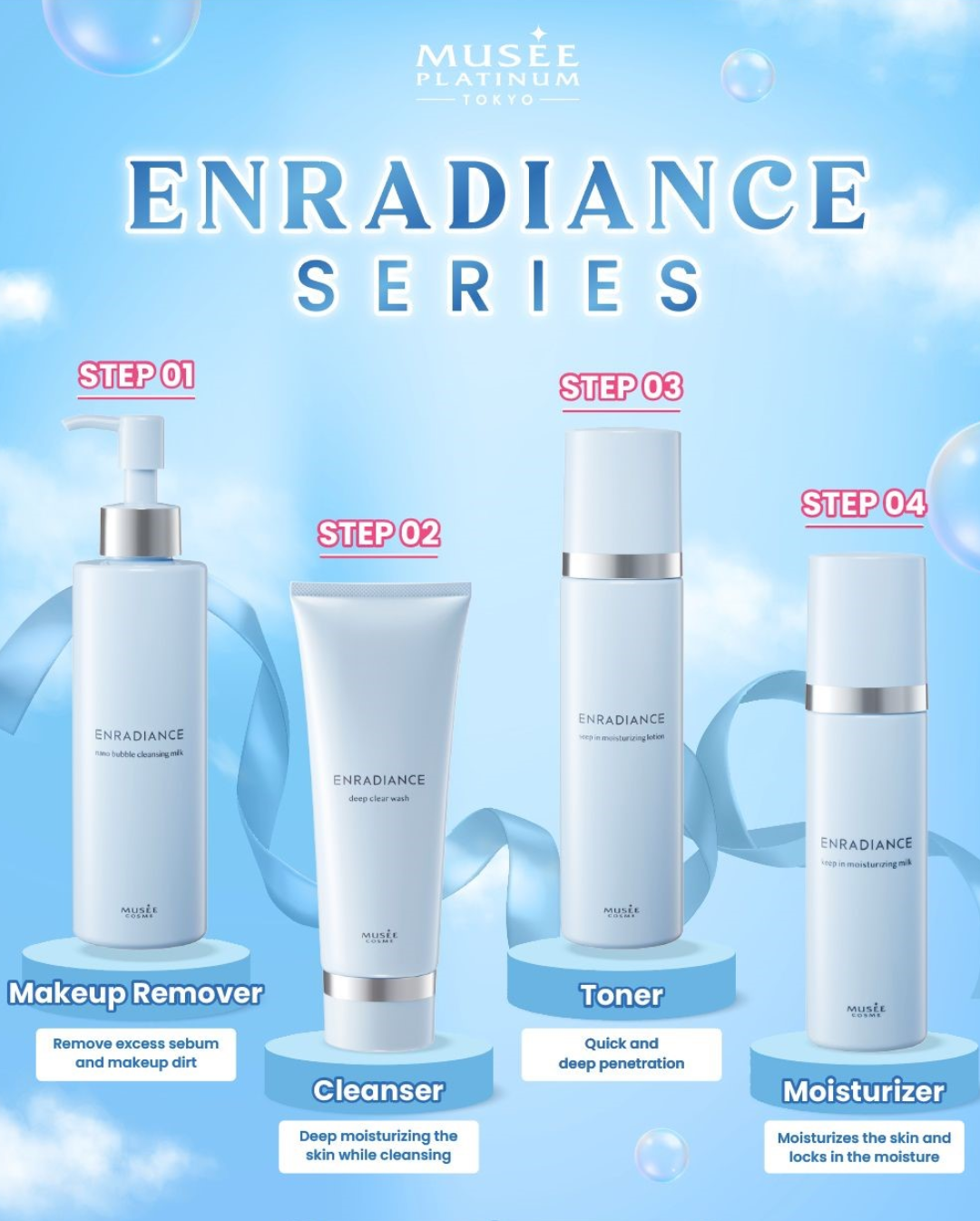 After any hair removal session, proper skincare is essential to maintain smooth, healthy skin. Gentle products can help avoid irritation, while regular moisturising locks in hydration and soothes any post-treatment sensitivity. For the best results, Musee Platinum Tokyo recommends the Enradiance Skin Care Series Set, featuring the Nano Bubble Cleansing Milk. This luxurious cleanser deeply cleanses without stripping moisture, ensuring your skin stays nourished and radiant after any facial hair removal treatment.